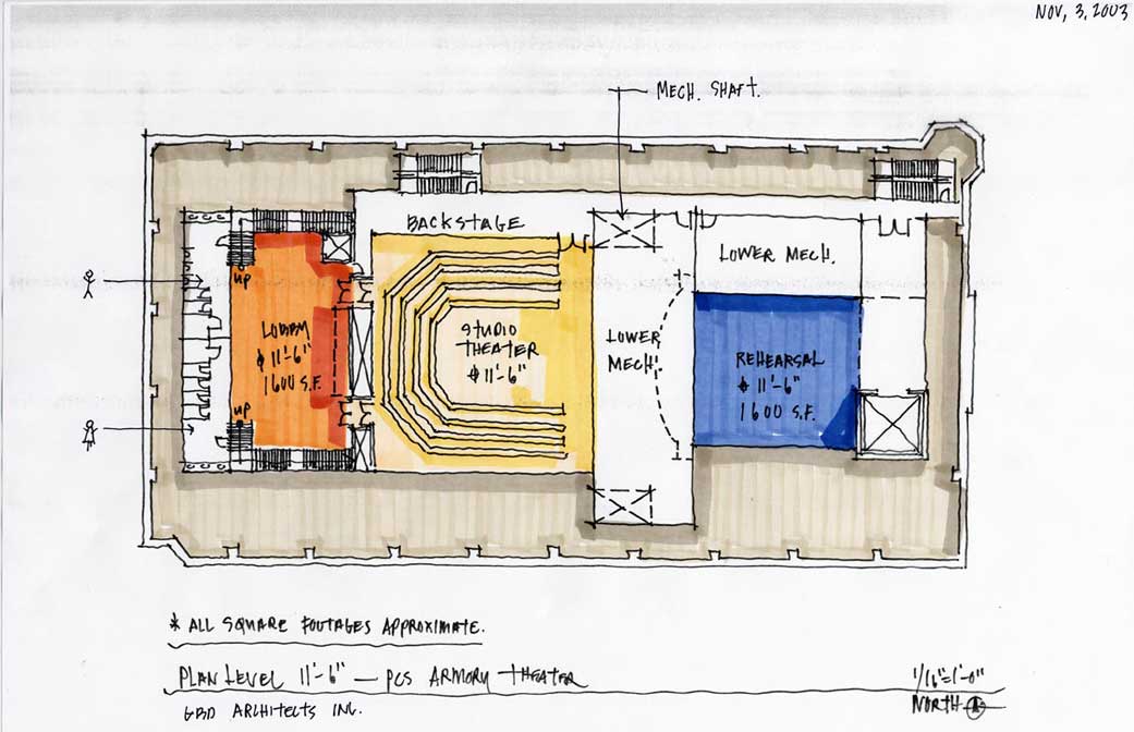 Landry & Bogan worked with GBD Architects and the staff of Portland Center Stage to design the conversion of the landmark 1891 Armory Building in the Pearl District of Portland, OR, into a new home for PCS. Along with the 600-seat Bob and Diana Gerding Theatre and the 200 seat flexible Studio Theatre, the Armory contains a costume shop, props, dye and crafts areas, dressing rooms and a rehearsal room as well as offices and meeting space for PCS.