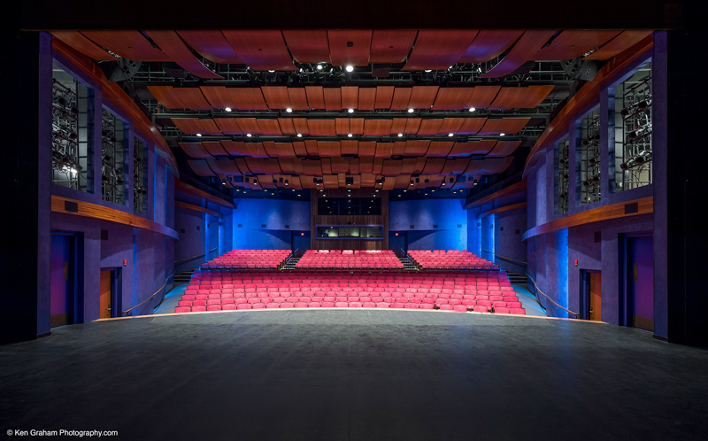 We designed performance lighting, the orchestra pit lift, rigging for the full fly tower from schematics to inspection of completed systems, as well as advising the architect and engineers on lighting positions, performance floors, control and followspot locations, dressing rooms, production shops and audience amenities.